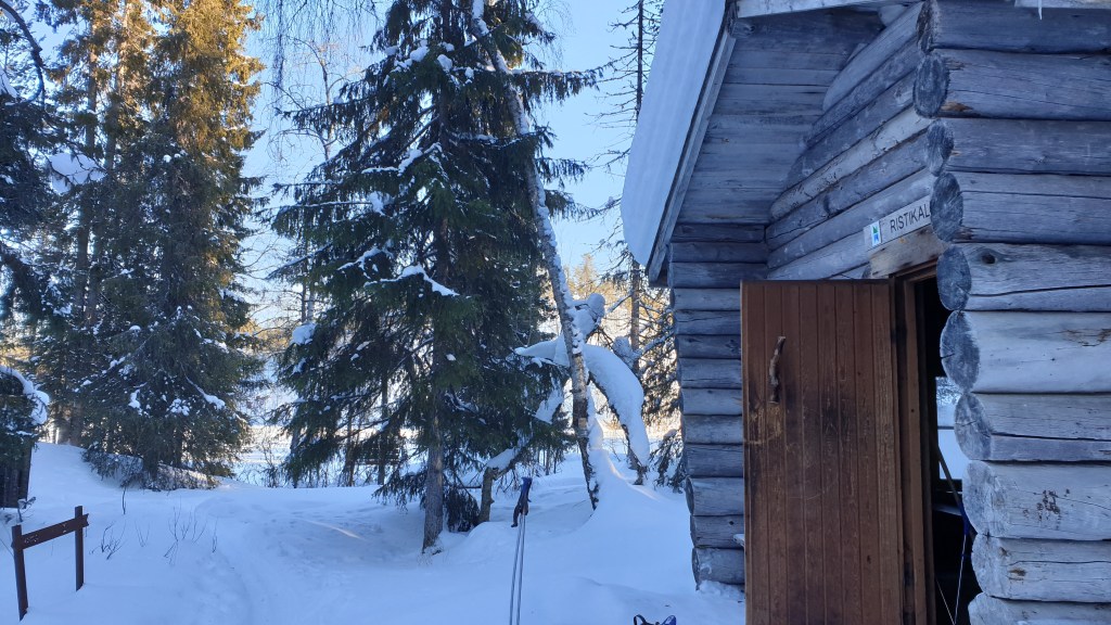 In good spirit we continued our hike through the magical snowy landscape. After another hour or so we reached Ristikalio. A small hut next to a frozen lake. It was one of the most romantic places I had ever seen. A small heater with nice beds with tons of virgin snow around.