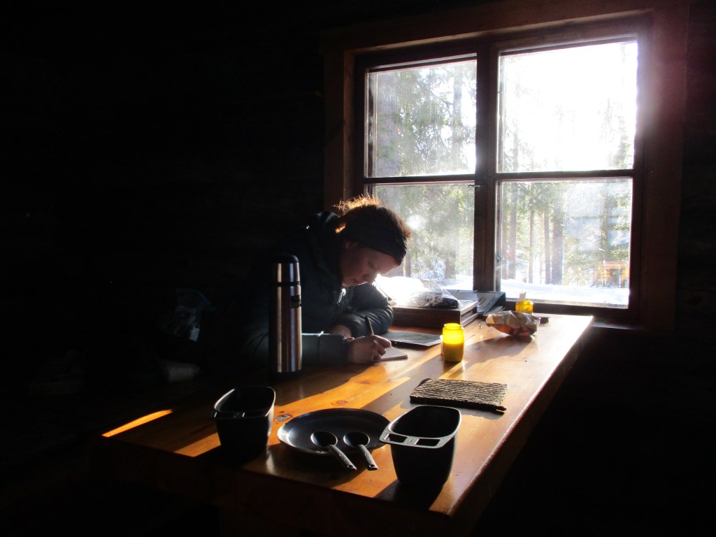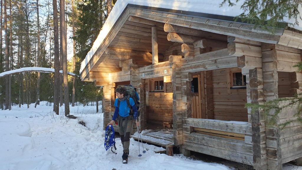 With none of the options being very attractive we kind of half halfheartedly tried all. With none of them really working out swiftly we found us hiking towards Ansakampa. We marched on as we knew we did not have much daylight left. We were lucky with the fact that the route to Ansakampa was a well trodden langlauf trail in winter. This meant that we could walk pretty fast and we arrived at the hut about 10 minutes before it was truly fully dark.