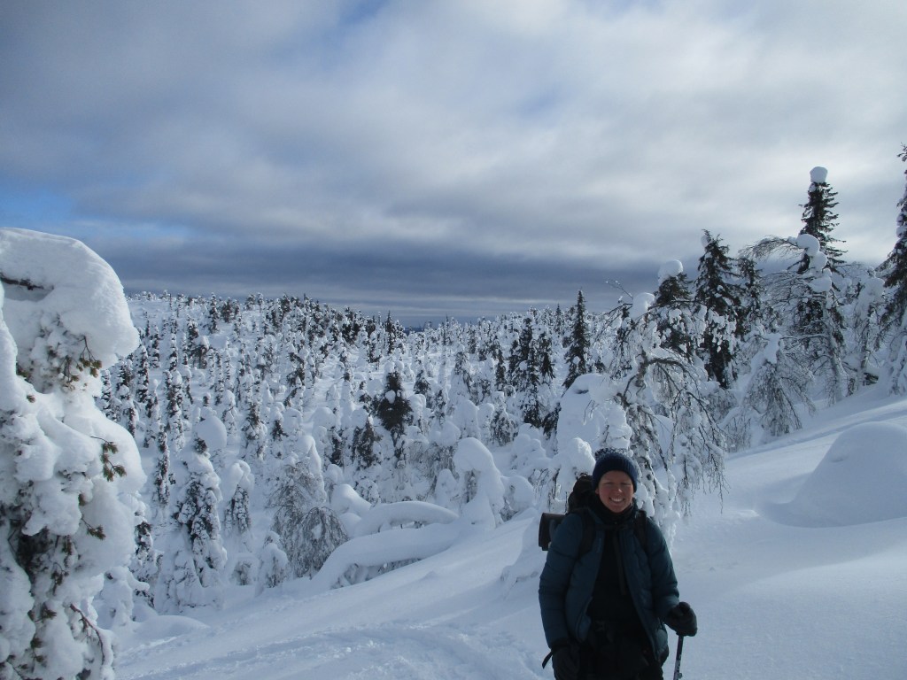 It was a good thing that we decided to hike the whole trail. After a boring our on the road we were treated with what is probably the best part of the Karhunkierros. We hiked steep up through snow covered trees with wondrous shapes. Then we got to enjoy rather great views over the vast taiga all around us and it’s many frozen lakes.