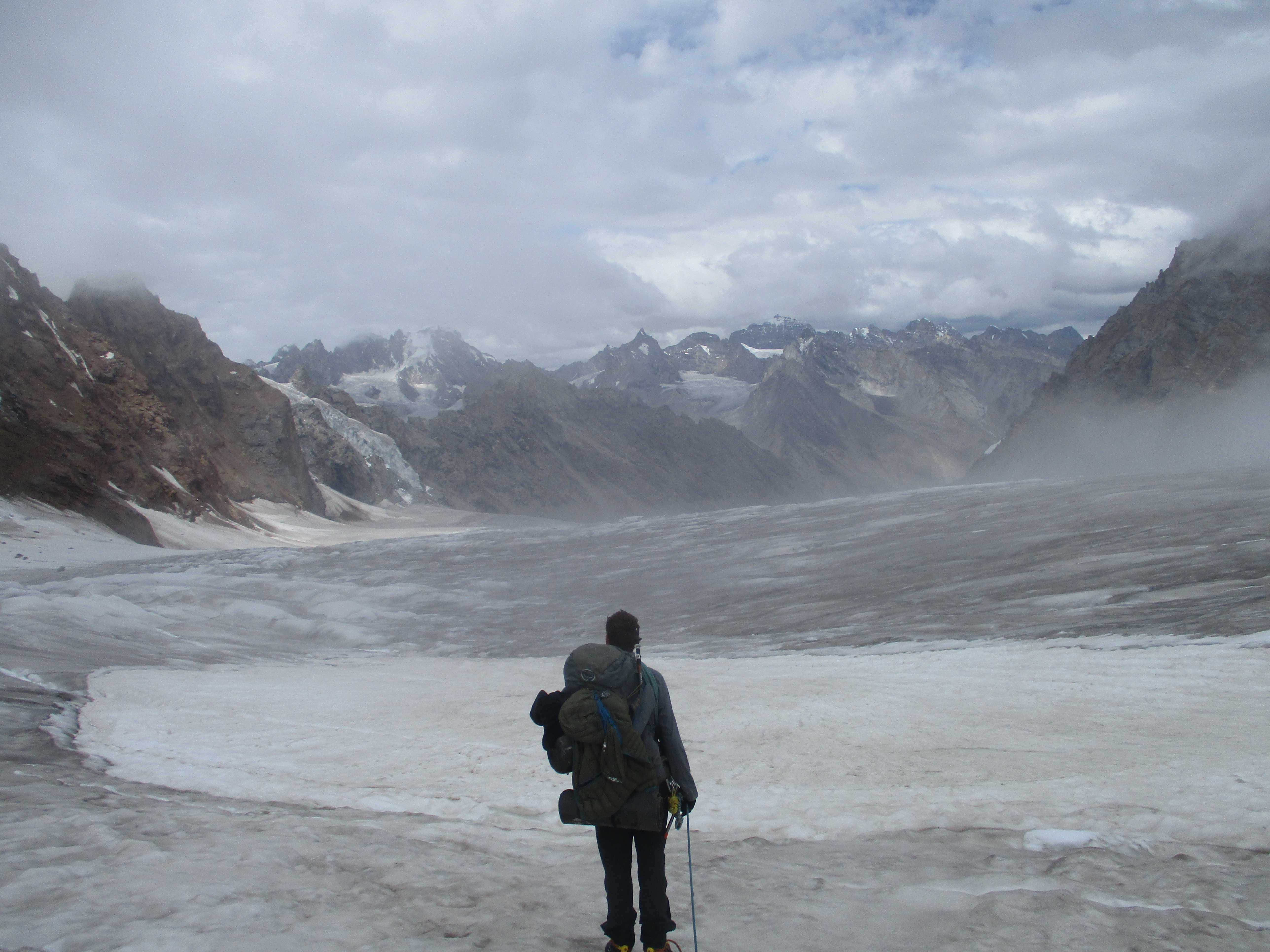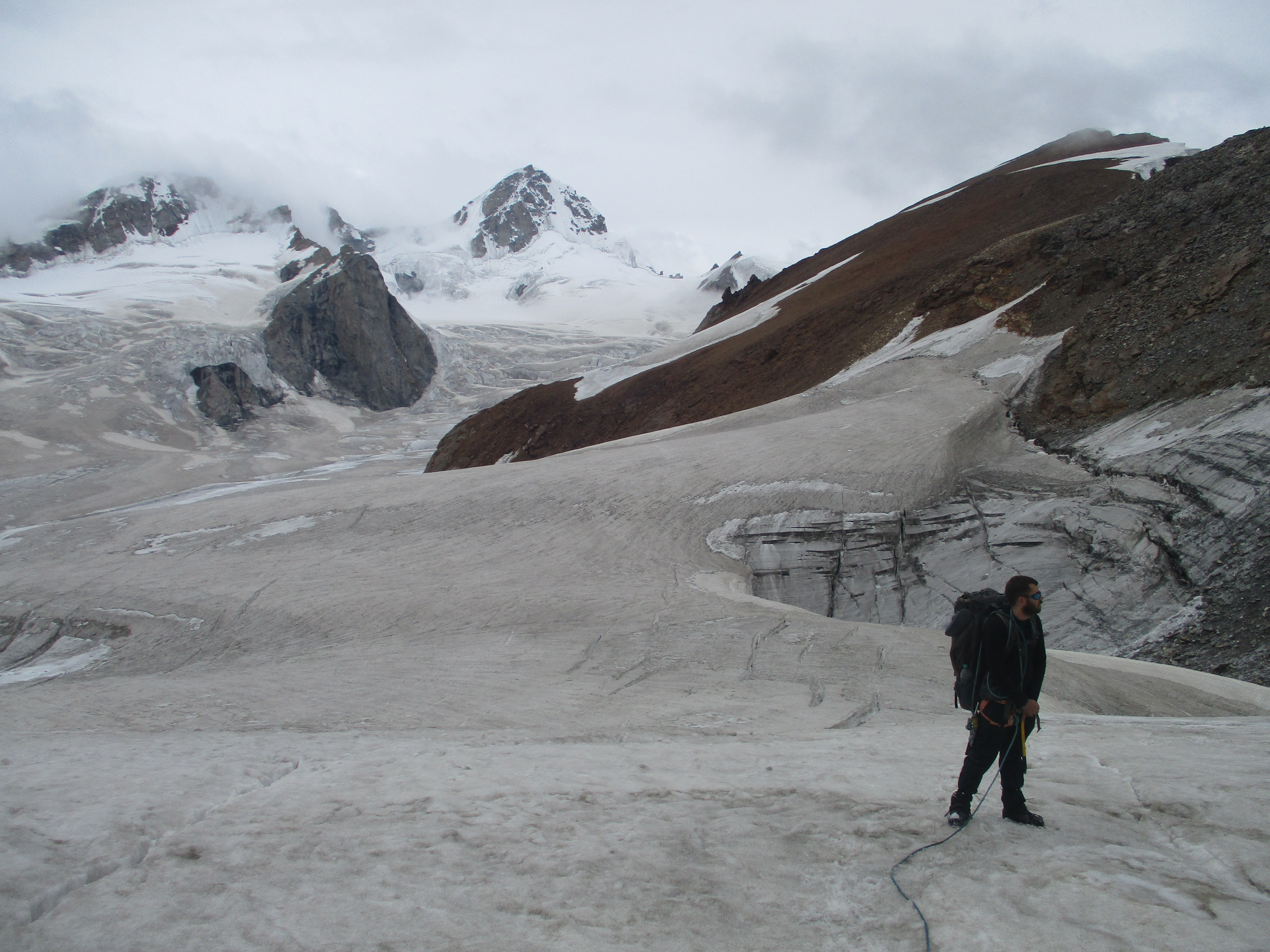 The way down was a lot harder than we had thought and hoped it would be. The norther side of the Miyar glacier is way smaller than the southern side, but there are way and way more crevices. The thick mist did not help at all. Making a bad situation worse was the fact that it was now already later in the afternoon meaning that the ice had gotten soft and with that a lot less reliable.