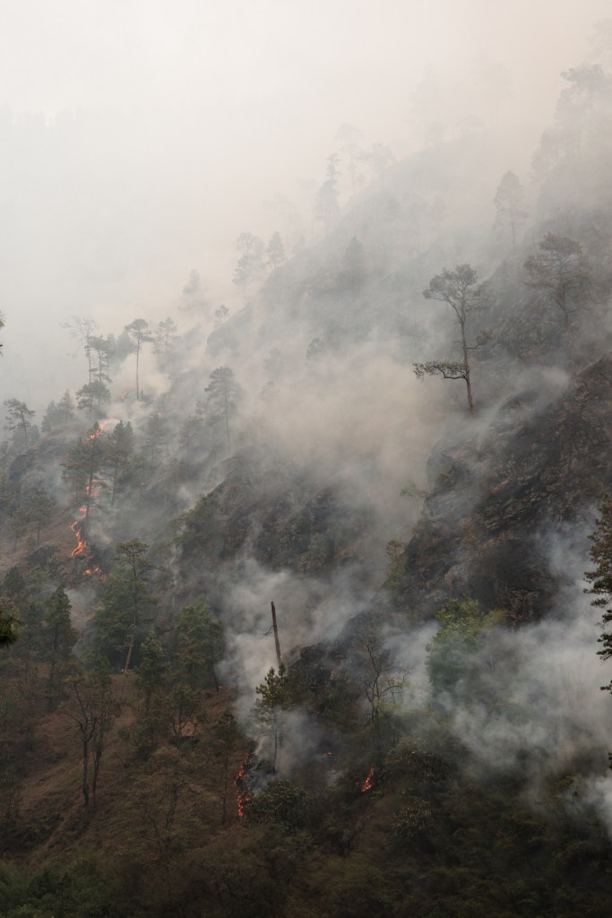 The new valley we were in was very different from the Tsum. We hiked through more jungle like terrain on the very bottom of the steep canyon. Along the way we saw a substantial wild fire on the other side of the river that no one really seemed to worry about. It might very well be fires like this that caused the haziness of the air we had been experiencing so far. It had not rained for 5 months I was told and wild fires were running rampant all over the country.