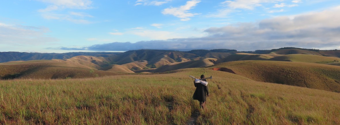 The same hideous loud music of last evening woke us up in the morning. If this does not get you out of bed and on your feet, nothing will. Our host walked with us for the first 30 minutes to bring us to the motorcycle road a bit further north. He was clearly hoping we might give him some money for it. It was a very pleasant morning walk over the red grassy hills. In the distance we could see the start of the jungles starting on the hilltops. Within two hours or so we will be in the forests. We said goodbye to our host and payed him a little. He gestured us that we had to follow this road eastward. So we did.