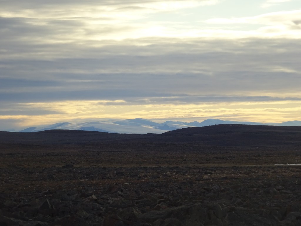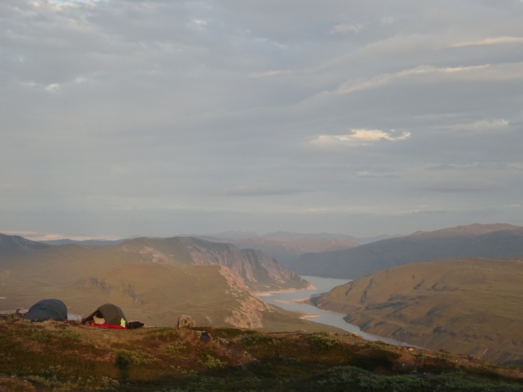 We hiked along the arctic coast through magnificent Tundras with brown mountains east of us. It was easy going, but it had been a long day. So by the time we got to the stream where we wanted to camp we were tired. We set up camp and ate outside for the first time with magnificent views over the ocean. The weather for tomorrow was looking good as well, we were in luck!