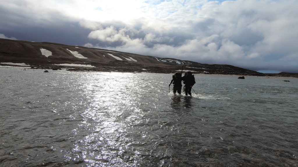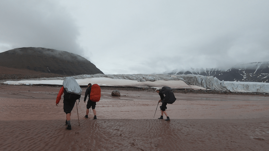 The weather was good and the way without many major obstacles. There were a few streams flowing from the ice sheet we had to cross but the only stream powerful enough to be an obstacle we could simply cross by hiking over the ice sheet for a few hundred meters.