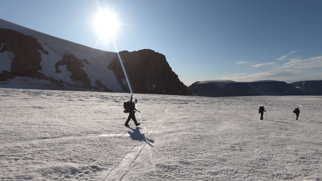 We ‘waded’ across the glacier for about 2 hours more before we set up camp. At this point the weather truly cleared up. A magnificent sight. We could see far and wide. I estimate that we could see the southern tip of Ellesmere which lay about 250km from us!