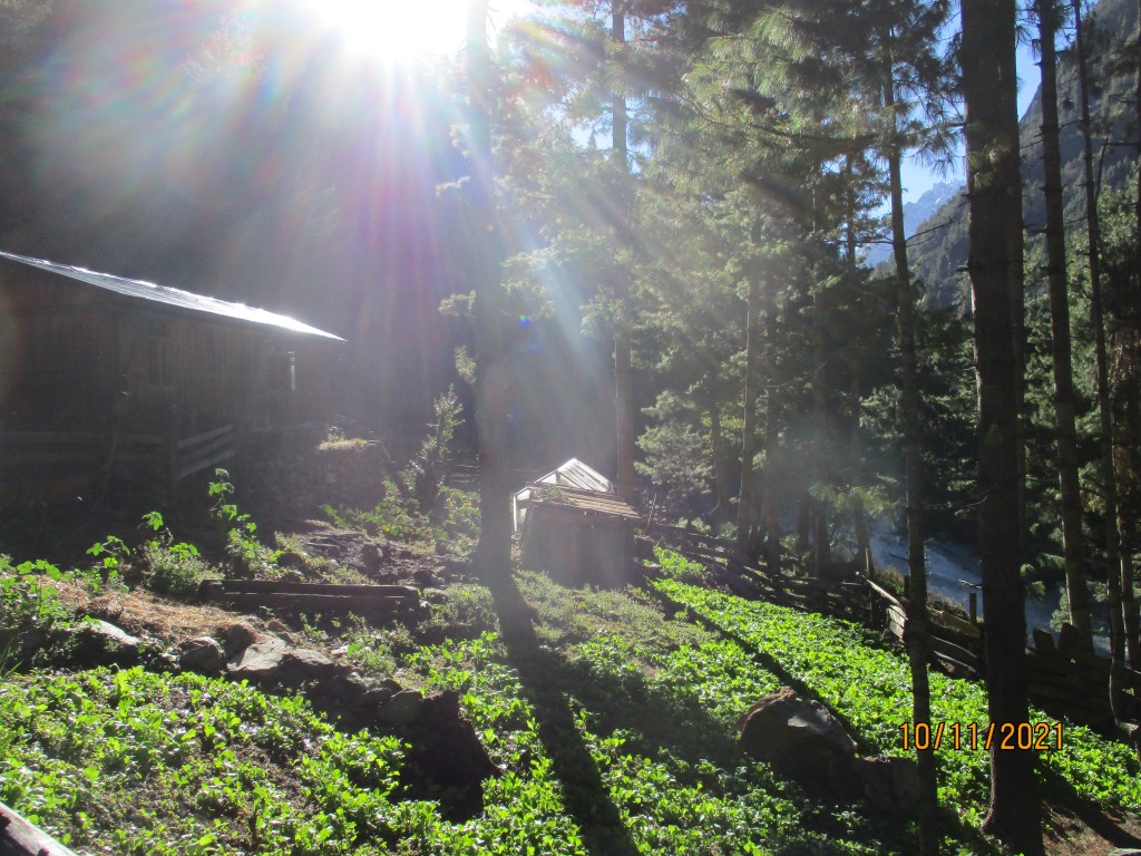 Ghuma Thanti consisted of four huts situated next to a stream. Two of them were for cattle and two of them for people. The huts were open, so we did not have to pitch our tents.