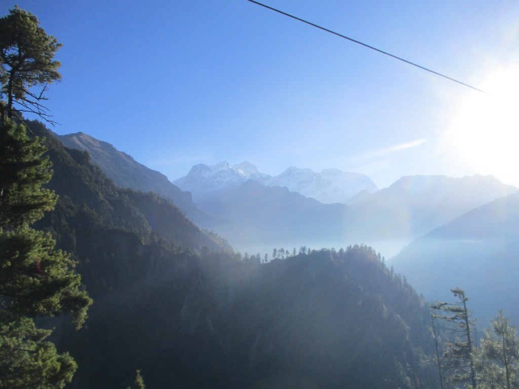 Around the village Tato Pani it got light and we got our first views of the mountains. We drove along the classic Annapurna circuit. A reminder that time is not frozen in Nepal and treks are constantly changing due to road building.