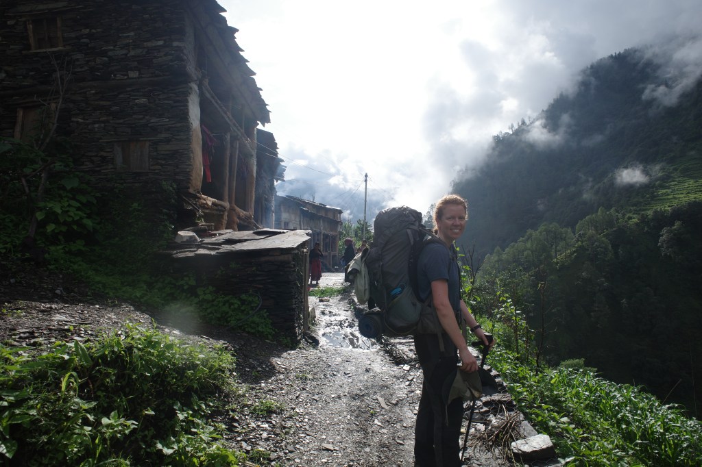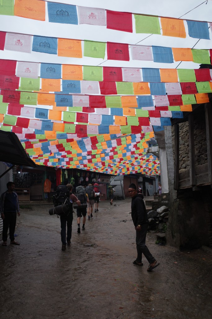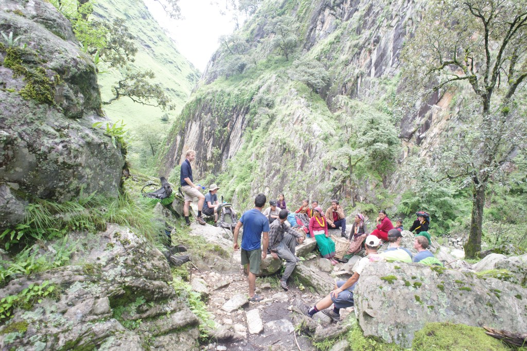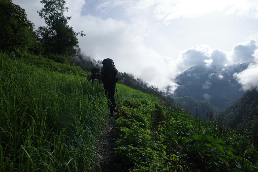 The weather did not do well for the moral, which was already low after a few long days on the trail. After the first hour we decided we had enough and hired a two local porters at our tea break. The porters helped enormously, the lighter weight made us speed up a lot and the group could enjoy the hike much better.