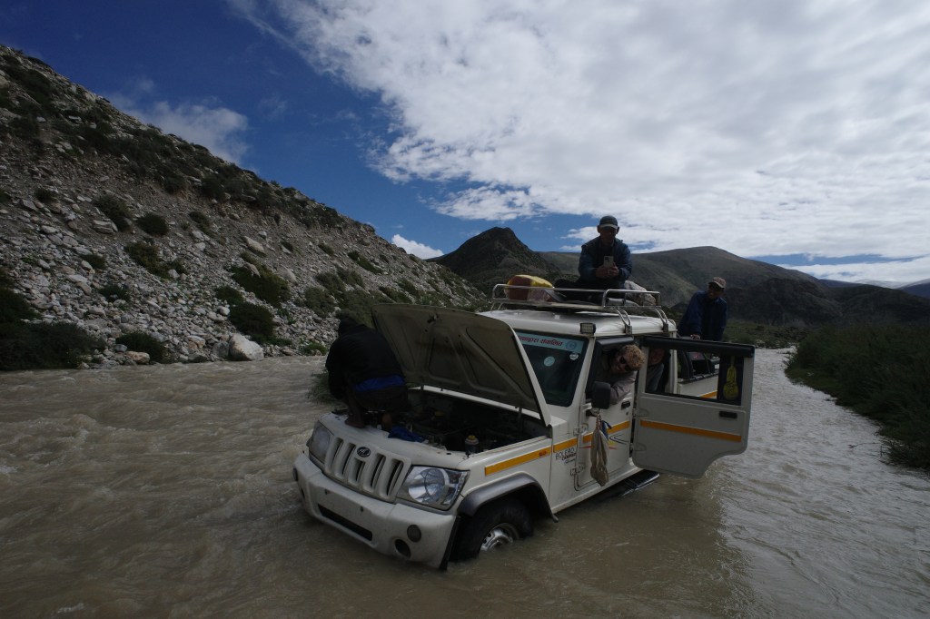 Since we decided to reach Limi by car instead of hiking in via the Koran valley we had a few extra days on our hands. Peter and I decided to spent those 3 extra days trying to climb a nearby mountain. Our initial aim was the Changwathang, but as we made our way there it turned out to be too far away to reach it’s base camp in a single day. the canyons leading up there were simply too wild to traverse quickly. Instead we setup camp at the foot of a 5992m peak that looked easy enough to climb. Unfortunately the weather had turned back when we woke up and we had to return empty handed… It was a disappointment for us, but Eline and the rest were pretty happy to see us back a day early. There had not been much to do back in the Limi ‘resort’. The main attraction in Limi resort had apparently been observing the staff fixing a jeep that constantly broke down every few meters.