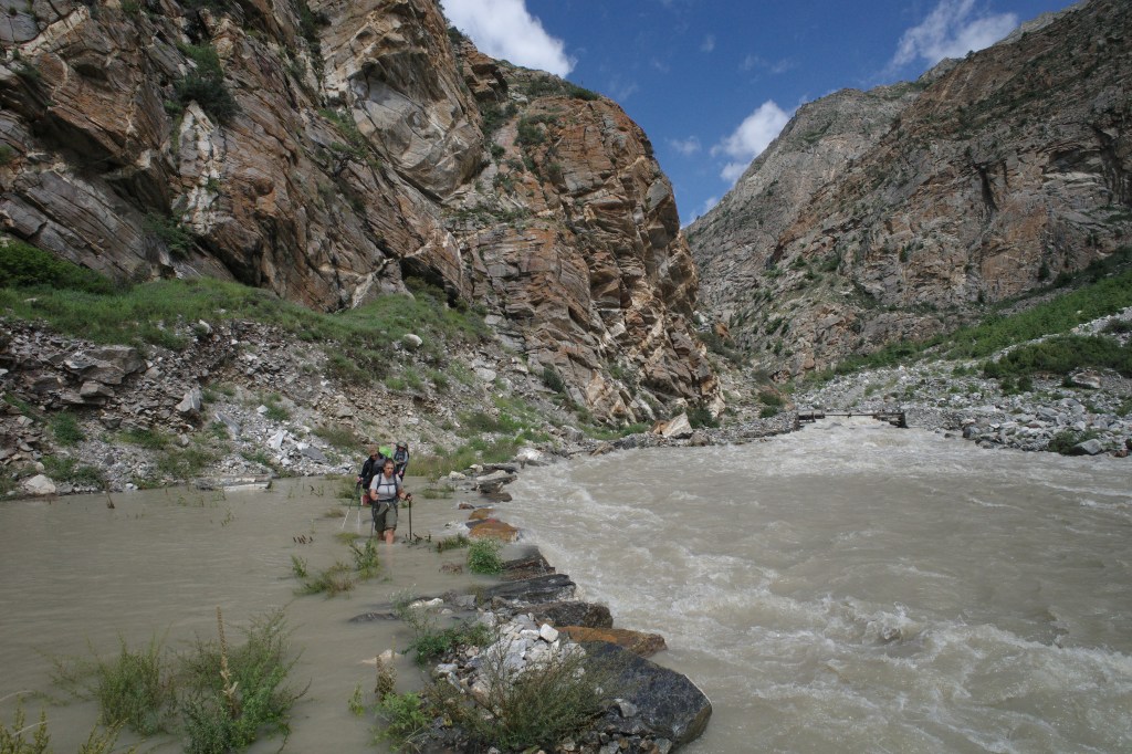 The bridge across the river had been swept away in spring so the river had to be crossed the hard way. To make our crossing as easy as possible we left early in the morning, before the bulk of the melting water would come rushing down.