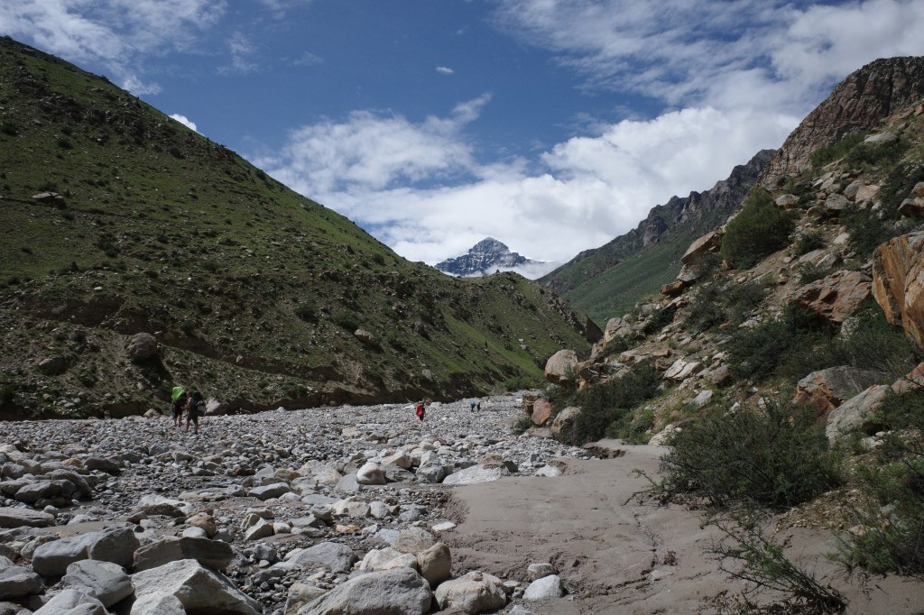 Once across the river we descended the valley for a short while after climbing a few hundred meters up to follow the main valley to Hilsa. We had some nice last views over the Kangdum on the border and the Gurla Mandathi in Tibet.