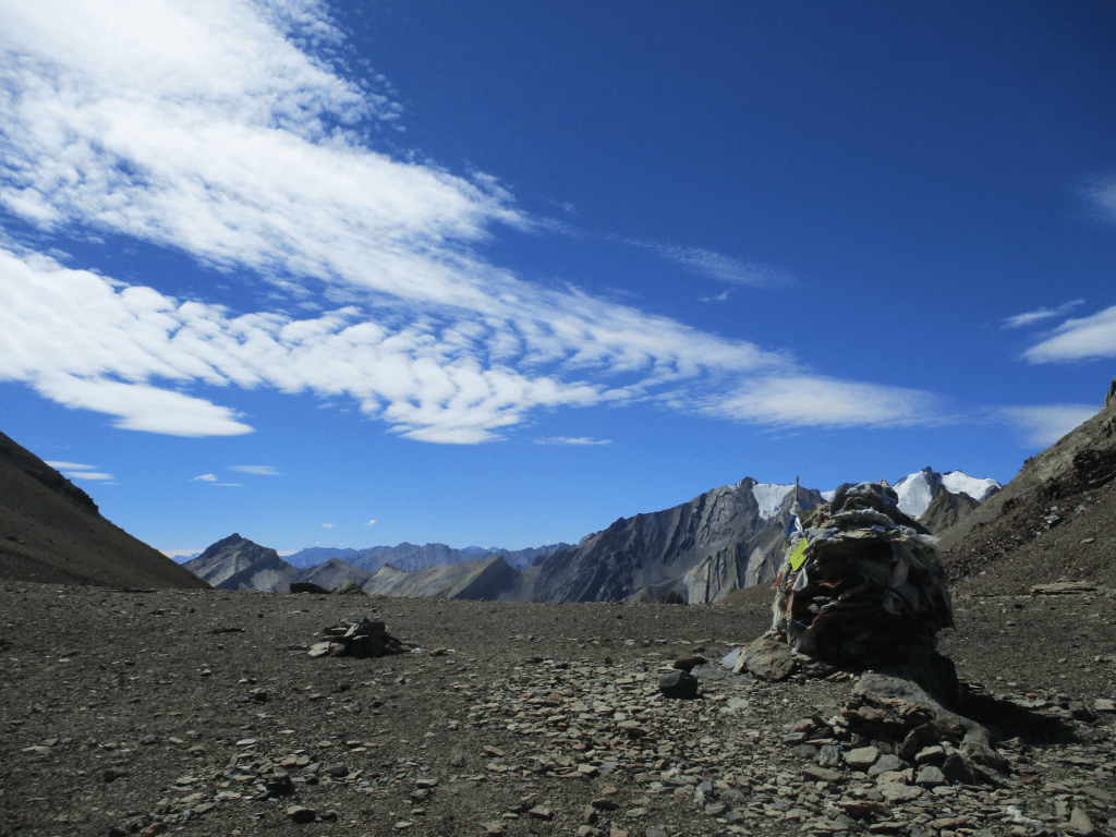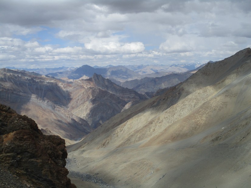 In the end we made it all the way to the pass. The view was simply amazing, both to the south where we came from but especially towards the north. In the south we could see the glaciated Himalaya peaks and north of us the endless brown and barren peaks of the Zanskar and Ladakh ranges. Far up north you could even see the steep and snowy peaks of the Great Karakoram range. We spent a lot of time on the pass gazing towards the north and the seemingly endless peaks we could see stretching out till the horizon.