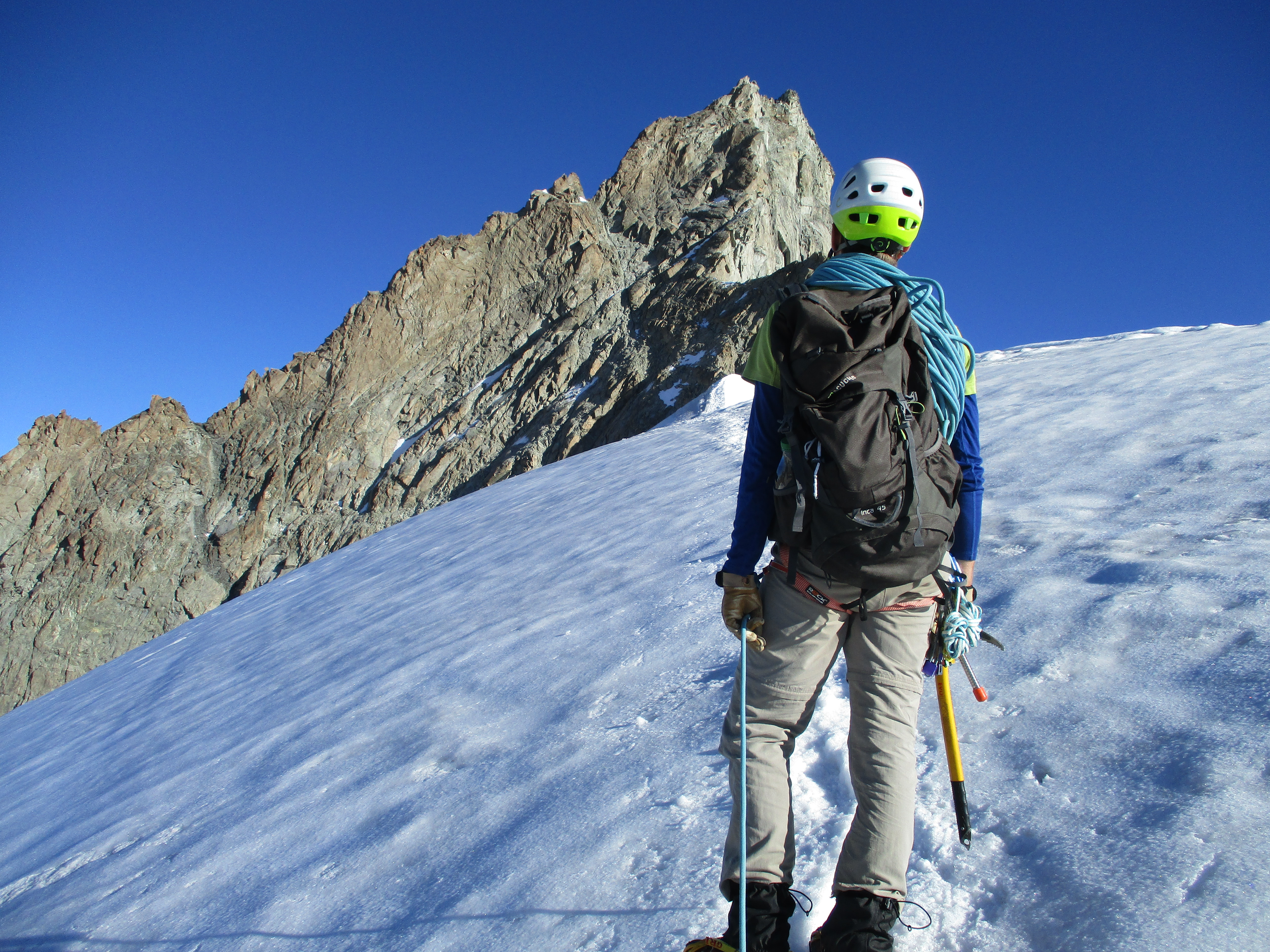 We met the last people we would see that day right after this traverse. We had started relatively late and had been quite slow. I didn’t like it as it is safer to climb with other groups nearby, on the other hand it was quite cool to have the mountain for ourselves all this time.