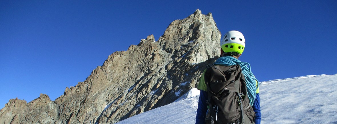 There was now only the mixed section to go in order to get back to the broad snow ridge from on where climb would become more like a strenuous hike. The snow had metled and we really needed to be careful. Rianna even made a fall just 200 meters or so before we would get to the snow ridge. Luckily the snow on which she fell was not too steep and I had her firmly on the rope.